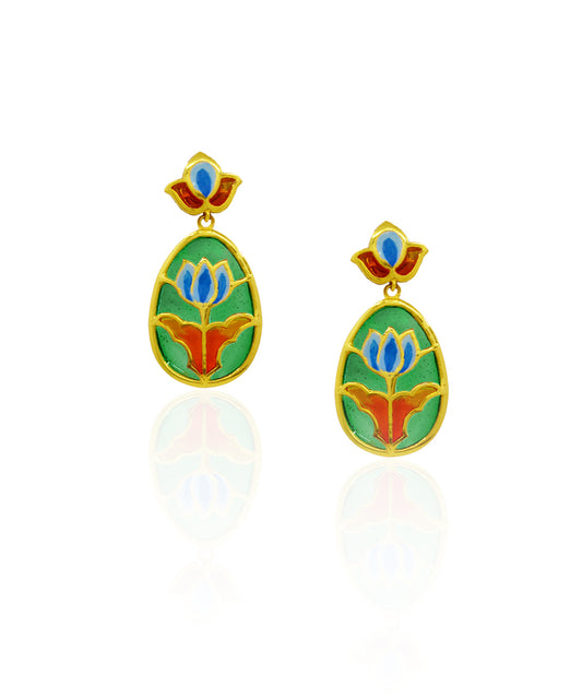 Aks Lotus Handmade Drop Earrings- Blue and Green Meenakari Flower JewelleryRegular priceRs. 13,500.00INR Regular priceUnit price / perRs. 11,500.00INR Rs. 13,500.00INR