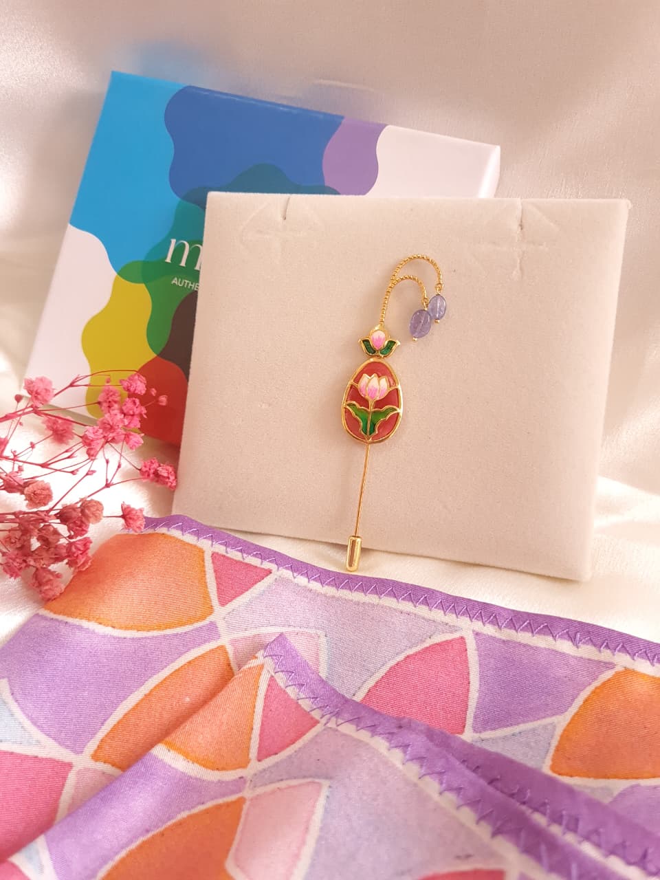 Aks Lotus Lapel Pin with Pocket Square - Gift Box For Men - Sterling Silver
