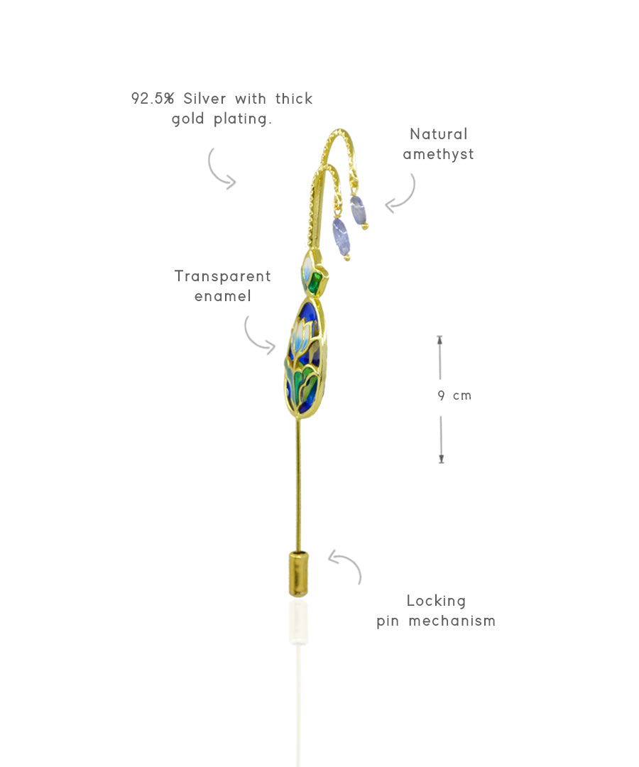 This lotus lapel pin is handcrafted in 92.5% Silver with intricate designs, also have thick gold plating, and enameling for a touch of perfection. Elevate your style with everyday luxury and vibrant craftsmanship.