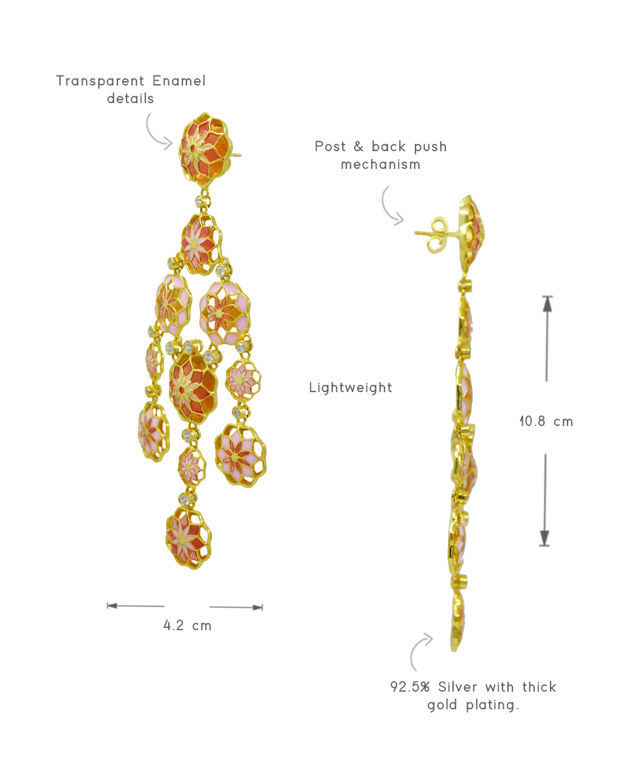 Gul Phool Earrings - Pastel Pink and Orange Enamel -Light Weight - Statement Flower Jewelry