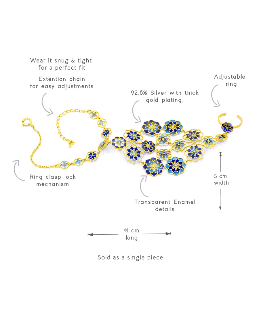 Gul Zuhuur Hathphool Bracelet – Blue Meenakari Enamel - Flower Hand Jewelry
