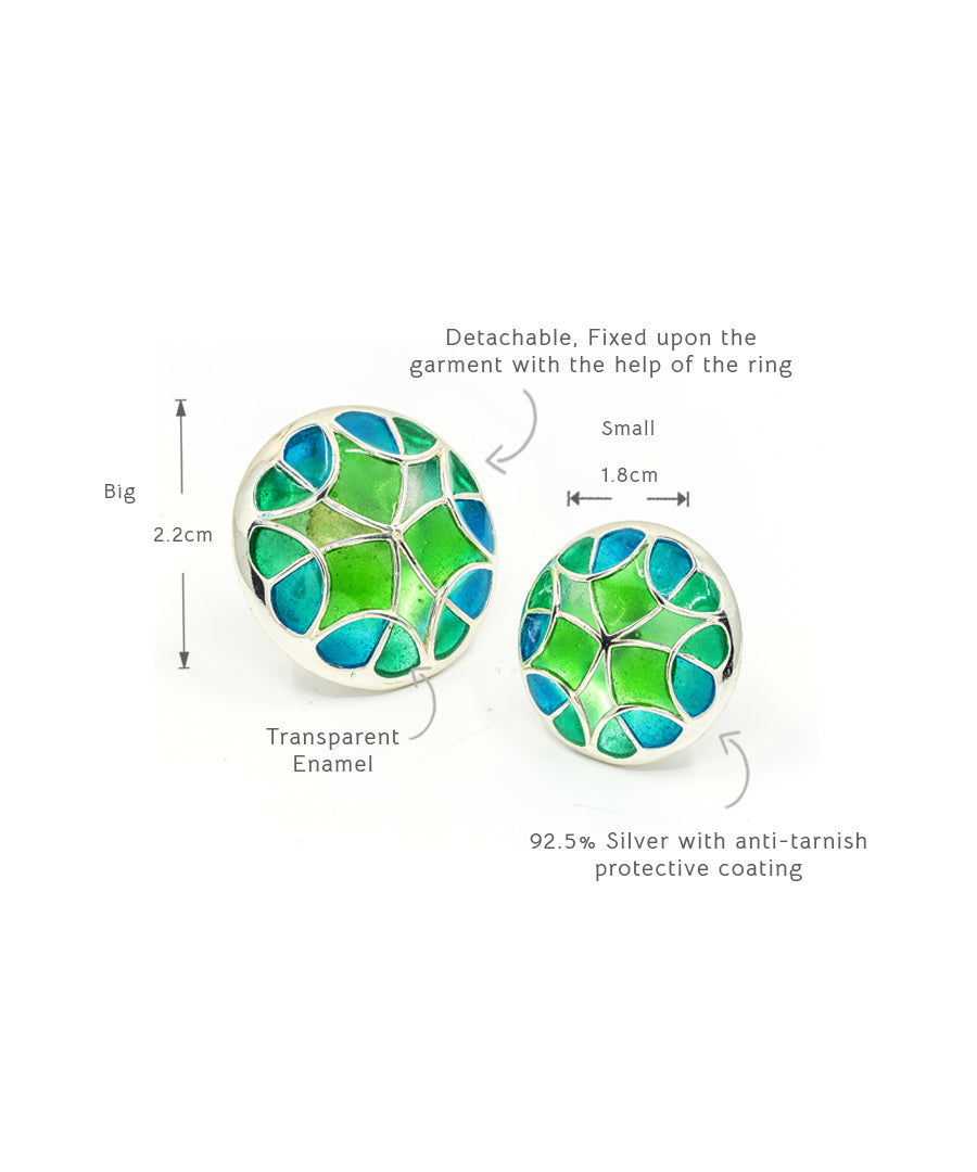 These sherwani buttons are handcrafted in 92.5% silver, has an anti tarnish protective coating with enameling details in vibrant colors.