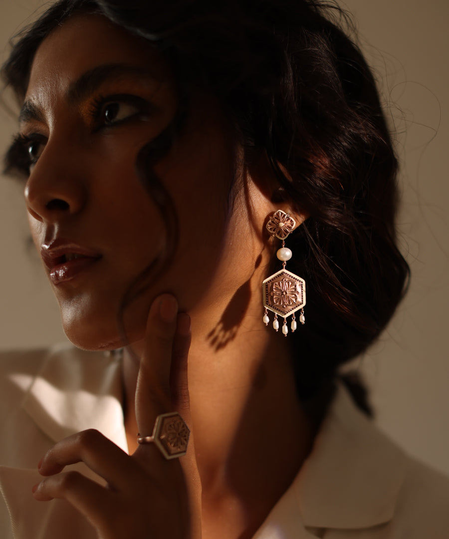 Rosegold Brown Zircon Magnolia Earrings