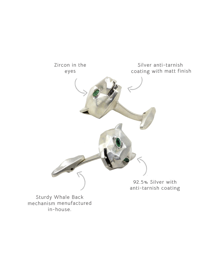 These Panther cufflinks are handcrafted in 92.5% silver, with silver matt finish, has a whale back mechanism, easy to wear with every outfit.